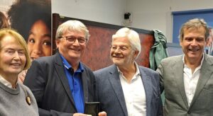 Franck Riehm, président de la F.F.B. a remis à Xavier Léonard la médaille de bronze de la Fédération en remerciement des 4 ans passés à la présidence du comité du Lyonnais. Sur la photo de gauche à droite : Chantal Lebienvenu, Xavier Léonard, Patrick Bogacki et Franck Riehm