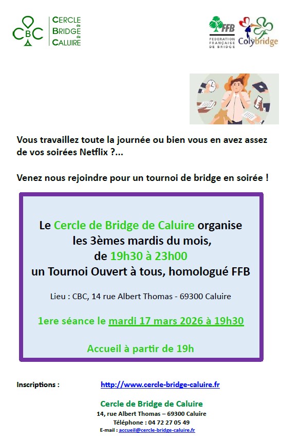 Bridge de 9h à 12h30 , puis 14h30 à 18h00 puis 10h30 à 23h00 !